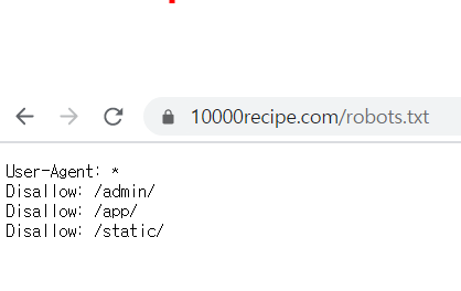 확인한 결과 모든 User에게 admin, app, static만 disallow하고 있습니다.